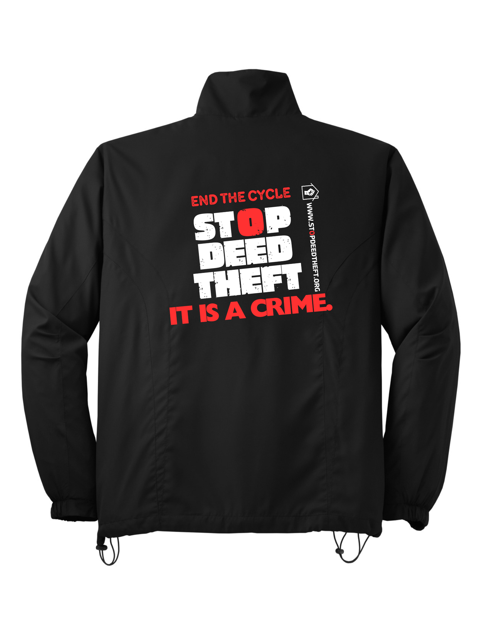Our Stop Deed Theft Windbreaker lets you take a stand against deed theft while staying comfortable and protected from the elements. Made with lightweight, durable material, this windbreaker is perfect for everyday wear and activism alike. Its bold design raises awareness, sparking conversation and support for those affected by deed theft. Wear it proudly to show your commitment to justice and community empowerment.